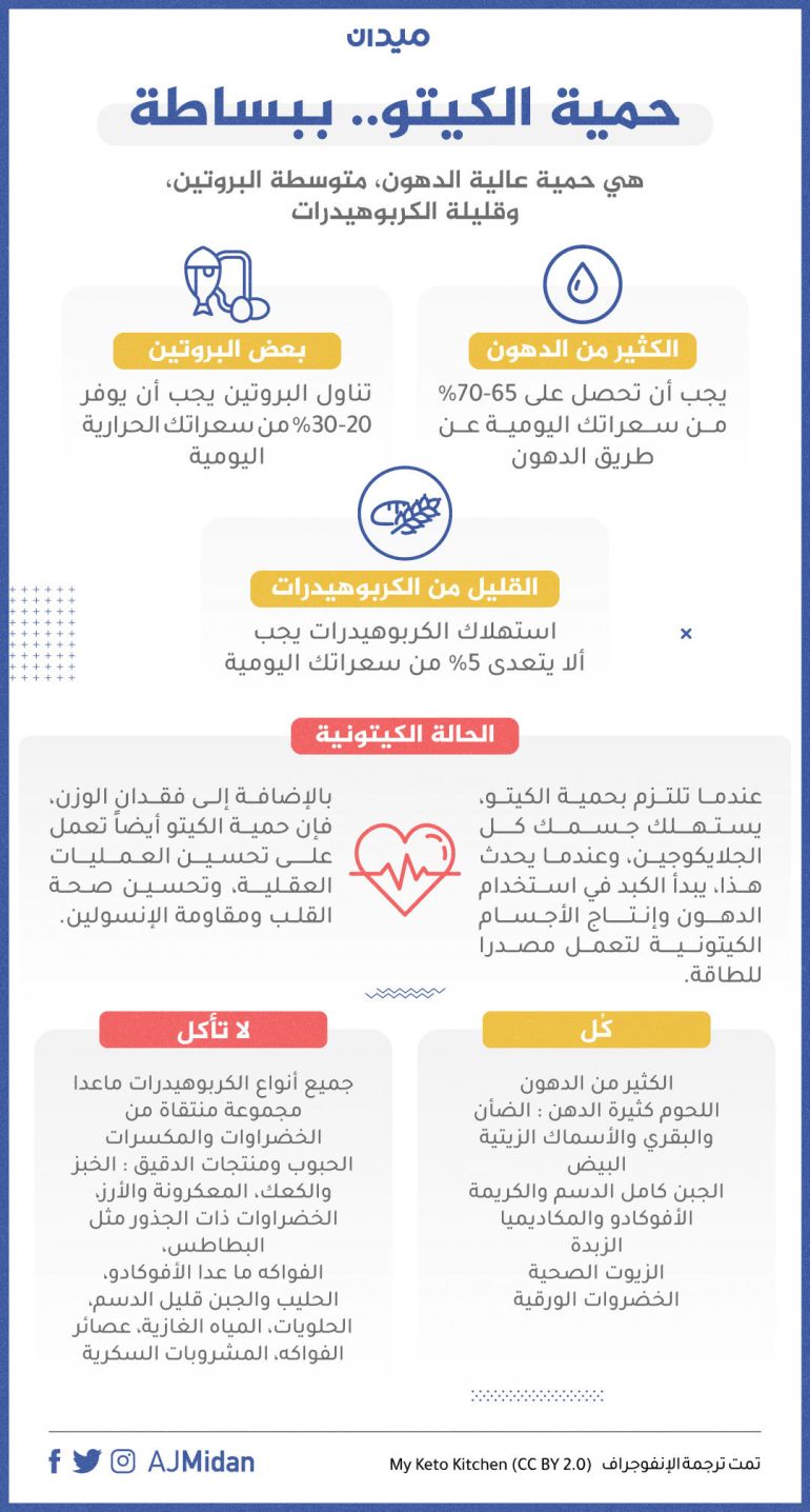 تتطلَّب حمية الكيتو بشكلها الحالي أن تحصل على قدر قليل من سعراتك اليومية من الكربوهيدرات، وأن تعتمد بالدرجة الأولى على الدهون مصدرا للطاقة. حمية الكيتو المثالية (2) يجب أن تحتوي على نحو 20-50 جراما فقط من النشويات في اليوم، وهذا يعادل حبة ونصفا من البطاطس متوسطة الحجم، أو موزتين كبيرتين على سبيل المثال. في المقابل يجب أن تحتوي على 75 جراما من البروتين، و165 جراما من الدهون، والرقم الأخير يساوي أكثر من 70% من سعراتك الحرارية اليومية.